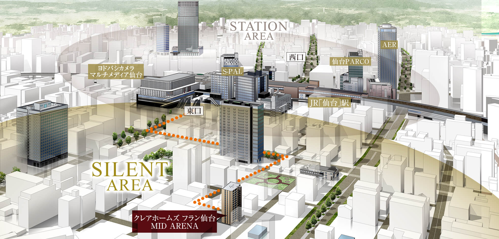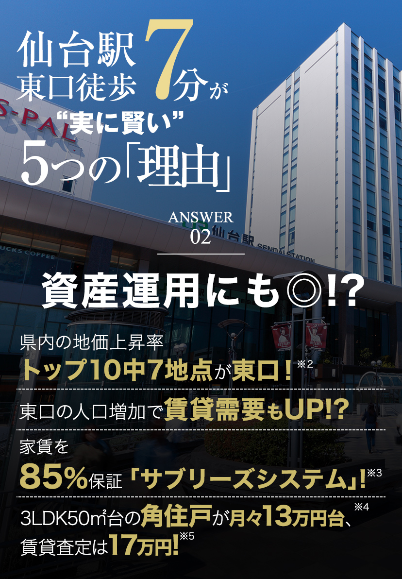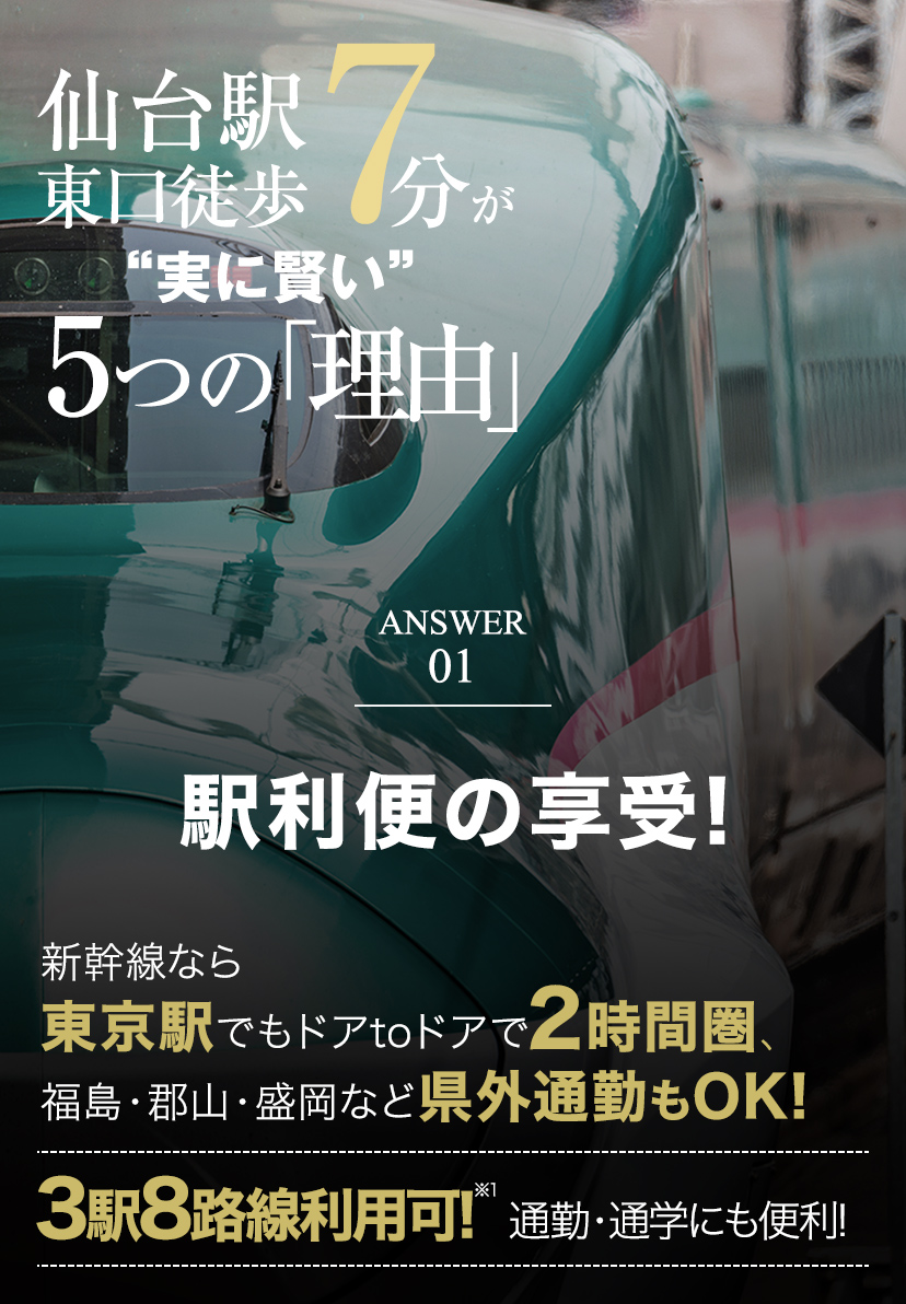※1:3駅8路線とは、JR「仙台」駅、JR「榴ヶ岡」駅、地下鉄「仙台」駅、JR東北新幹線、JR北海道新幹線、JR東北本線、JR常磐線、JR仙山線、JR仙石線、地下鉄東西線、地下鉄南北線を指します。