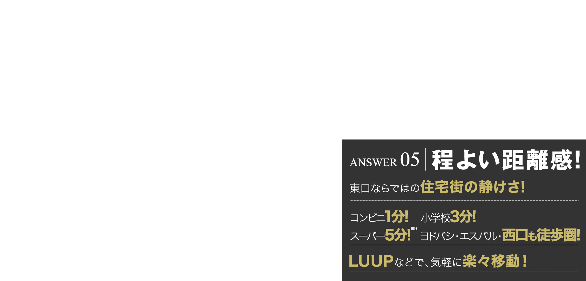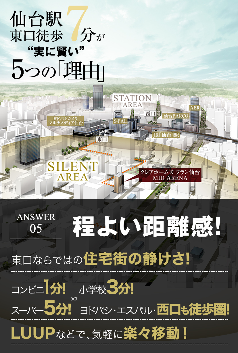 ※7:出典/(株)リクルート調べ ※東口エリアにおける2016年以降に発売された駅徒歩7分圏内の新築分譲マンション