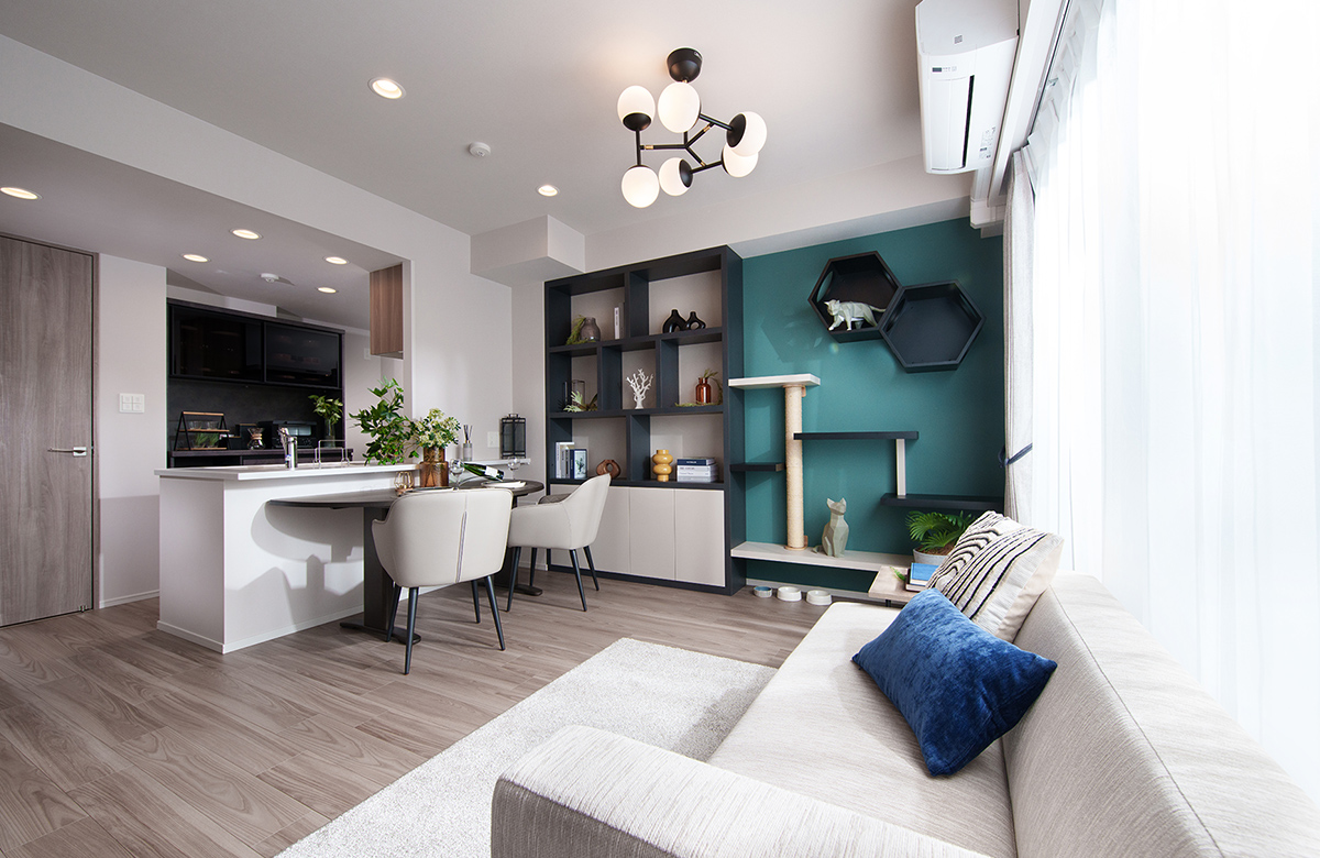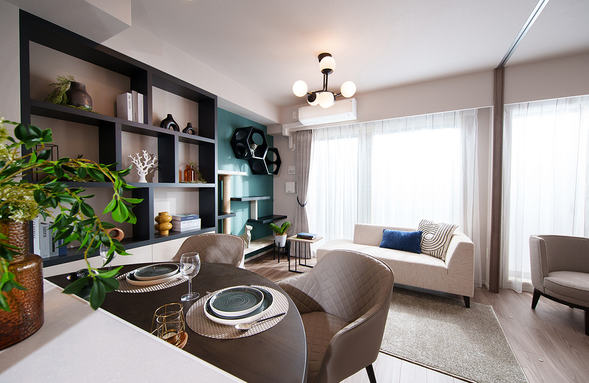 ※掲載の写真は、モデルルーム(Aタイプ)を2025年8月に撮影したもので、一部有償オプションが含まれております。また、家具・調度品等は販売価格に含まれておりません。タイプにより室内の形状・色彩・仕様等は異なります。
